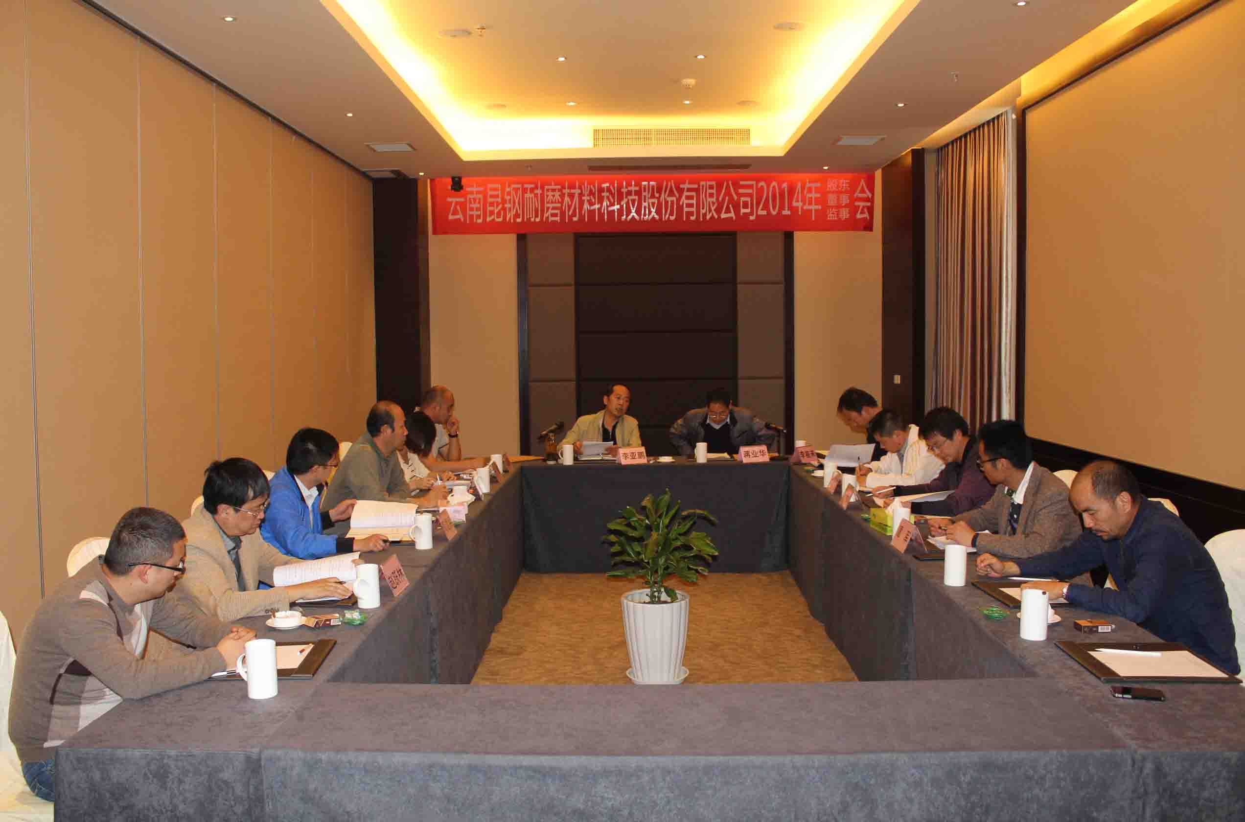 作者:管理員時間:2014-04-012014年3月29日,云南昆鋼耐磨材料科技股份有限公司股東會六次會議、首屆董事會八次會議在撫仙湖悅椿度假酒店召開。會議由李亞鵬董事長召集和主持,昆明理工大學材料科學與工程學院院長蔣業(yè)華、黨委副書記李祖來、昆明理工大學科技產業(yè)經營管理有限公司副總經理曹世瑛、企業(yè)管理部主任李曉江等股東代表、董事及云南昆鋼耐磨材料科技股份有......